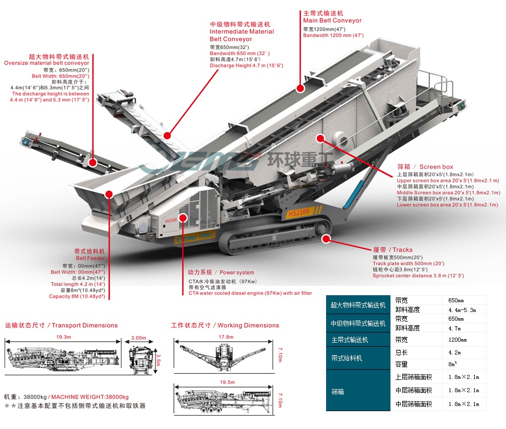 三層篩網(wǎng)面積均為6.1m×1.8m | 三層篩網(wǎng)面積均為6.1m×2.1m |