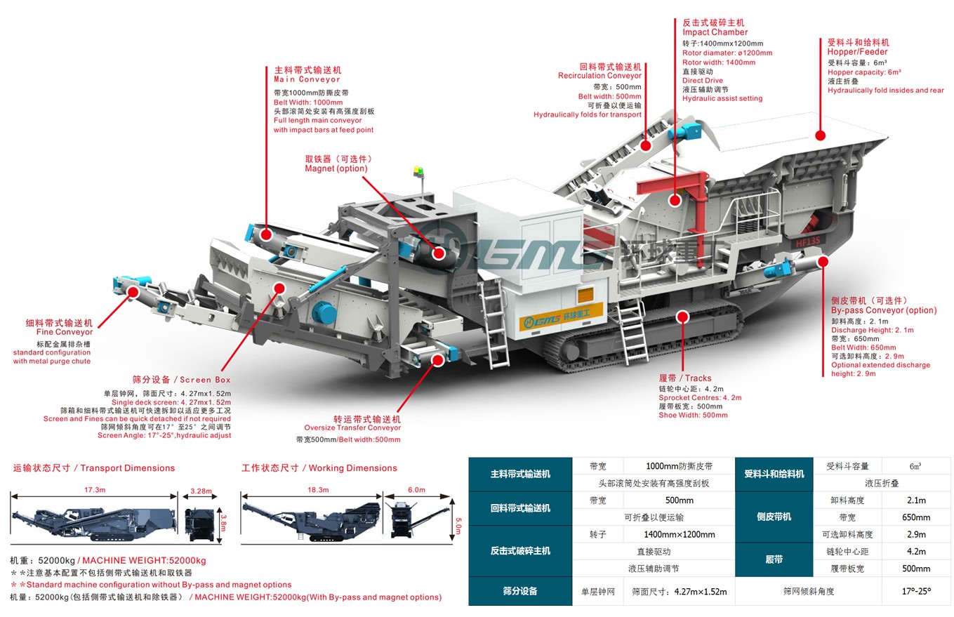 篩分設備和細料帶式輸送機拆卸簡易快捷,機器可以很方便地改為開環(huán)破碎。