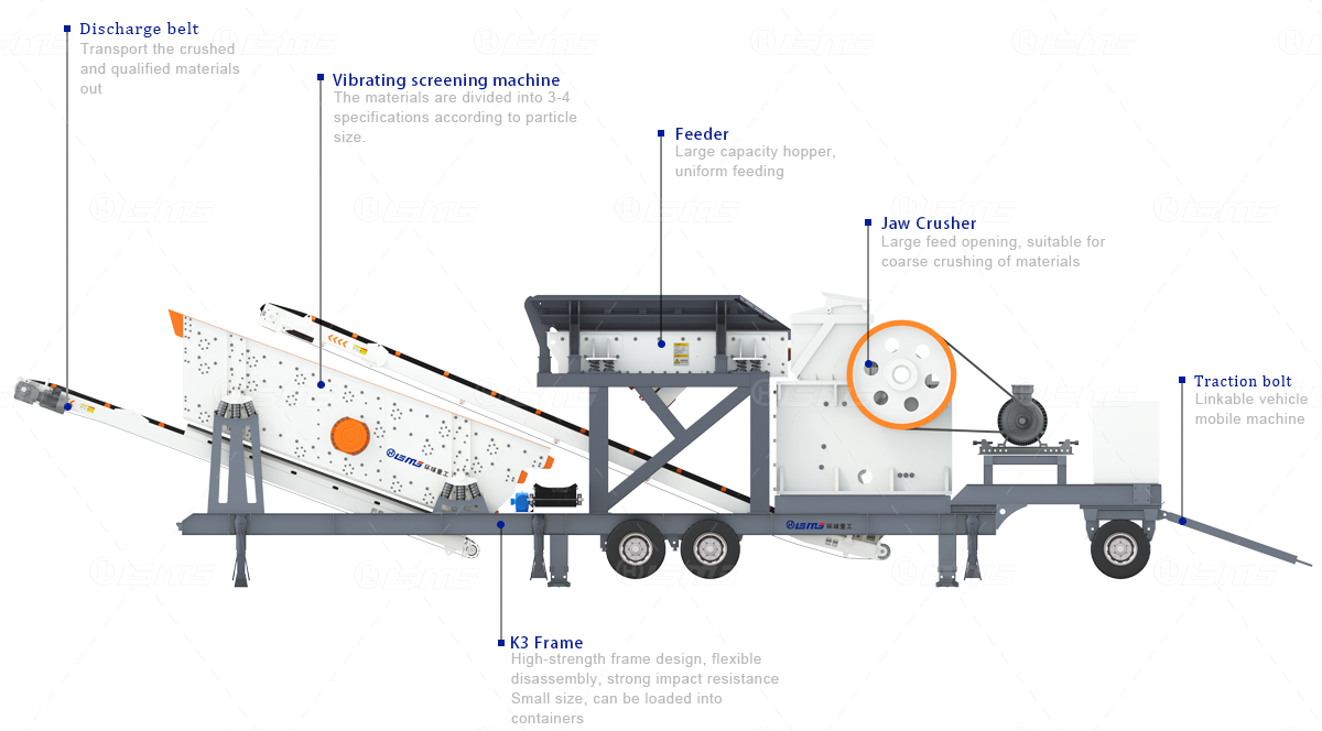移動(dòng)生產(chǎn)線每臺(tái)設(shè)備均配備車載皮帶機(jī),運(yùn)輸無需拆卸,到達(dá)現(xiàn)場(chǎng)可快速、整潔、有序的展開工作。