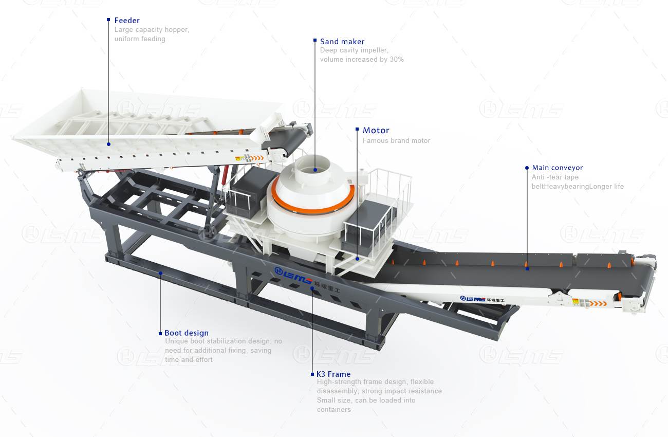 物料經制砂模塊(如葉輪高速沖擊破碎)后直接進入篩分系統,避免中間轉運環節,處理能力可達500-1250t/h。